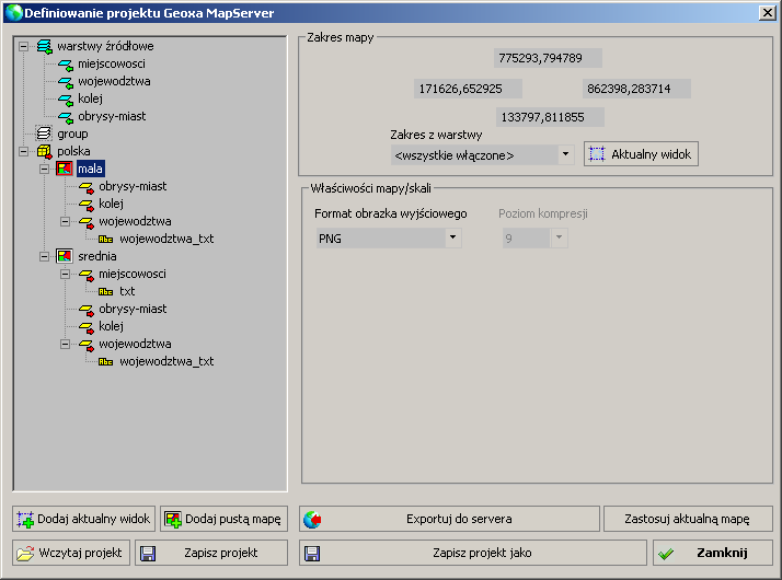 w pełni graficzne i intuicyjne budowanie projektów powoduje, że do zbudowania profesjonalnego systemu publikacji map wystarczy tylko podstawowa umiejętność obsługi komputera